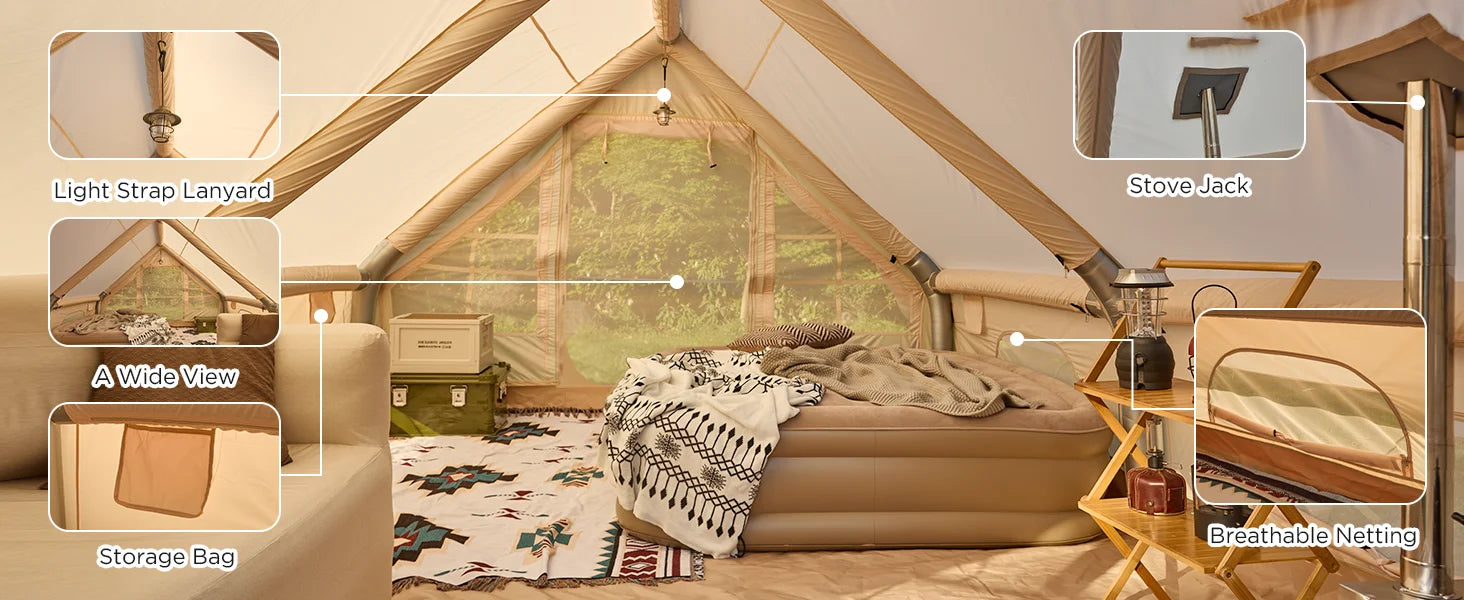 Built for endurance and convenience, this inflatable camping tent is ideal for weekend escapes, family trips, and outdoor adventures where space, reliability, and quick setup matter most. Experience roomy accommodation, dependable weather resistance, and simple setup that makes every camping trip easier and more enjoyable.