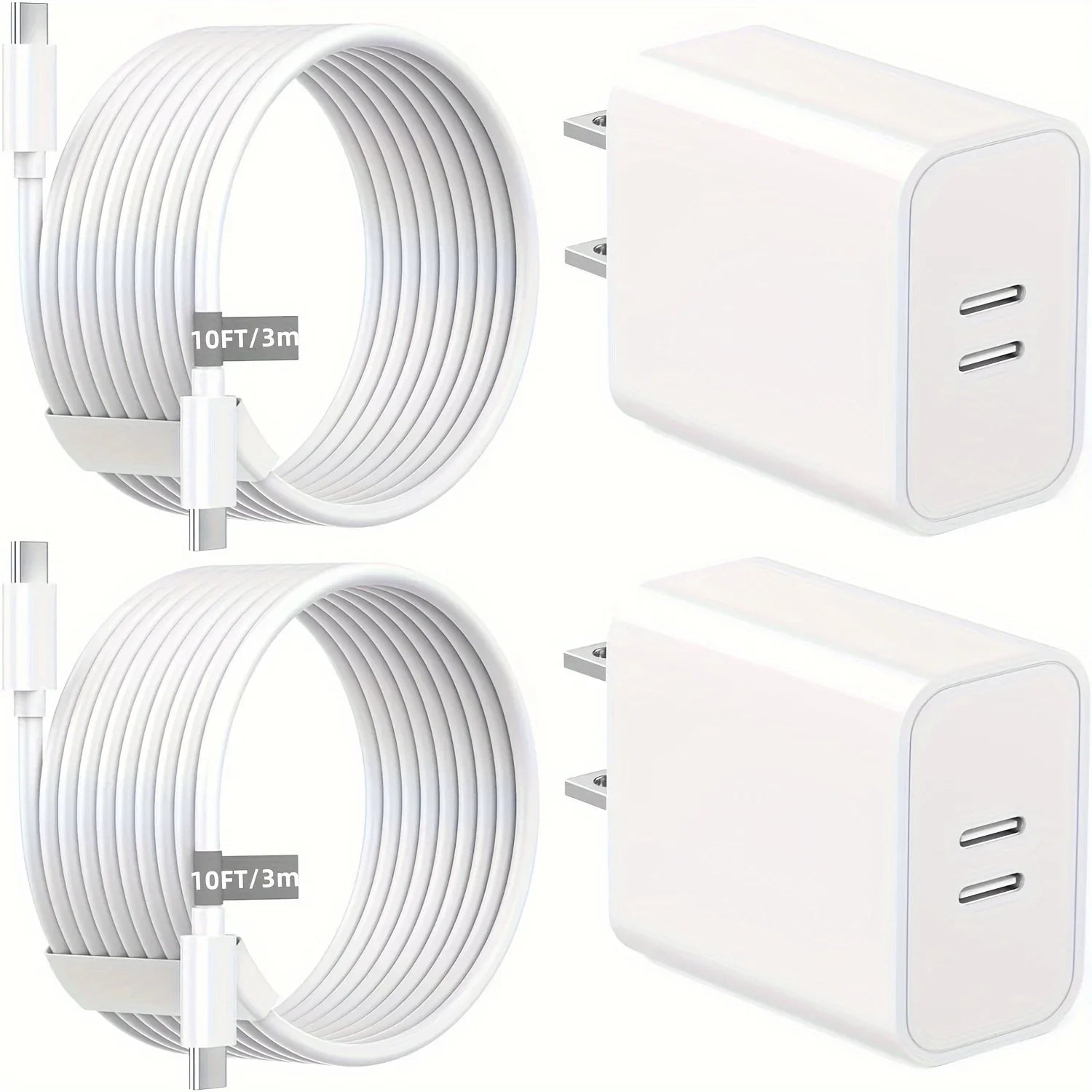 2 Pack 40W Dual Port USB C Wall Charger With 2x 10ft USB C Cables For IPhone 15 Pro Max 15 Plus IPad Pro Air Mini