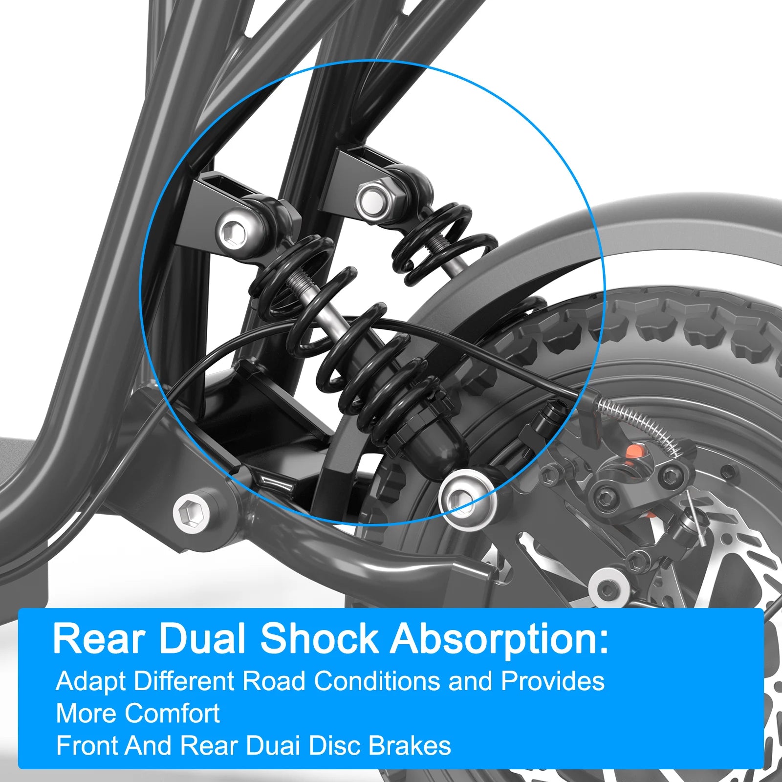 - Safety-first design with dual braking and a rear spring suspension for smooth handling on varied terrain.