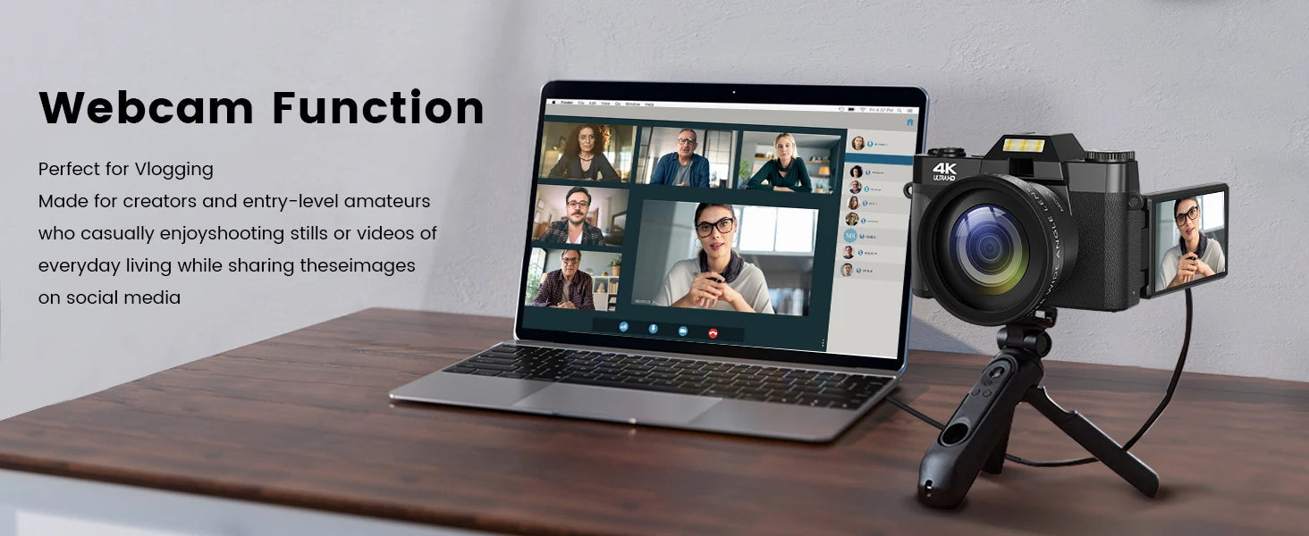 Introducing the Gavonde Compact 4K Camera With WiFi Webcam 64MP Camcorder — a versatile, pocket-sized powerhouse built for creators who demand professional-grade video, high-resolution stills, and effortless connectivity. This camcorder records in 4K and captures sharp 56MP stills, features a 180°-rotating 3" LCD for easy selfies and vlogging, and comes with a detachable 52mm wide-angle and macro lens for expansive landscapes and close-up detail.