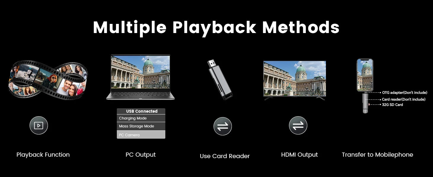 - Connect and stream — Built-in WiFi for quick photo transfers and easy webcam use for TikTok/YouTube live streams; HDMI output for TV playback; pause/resume recording function.