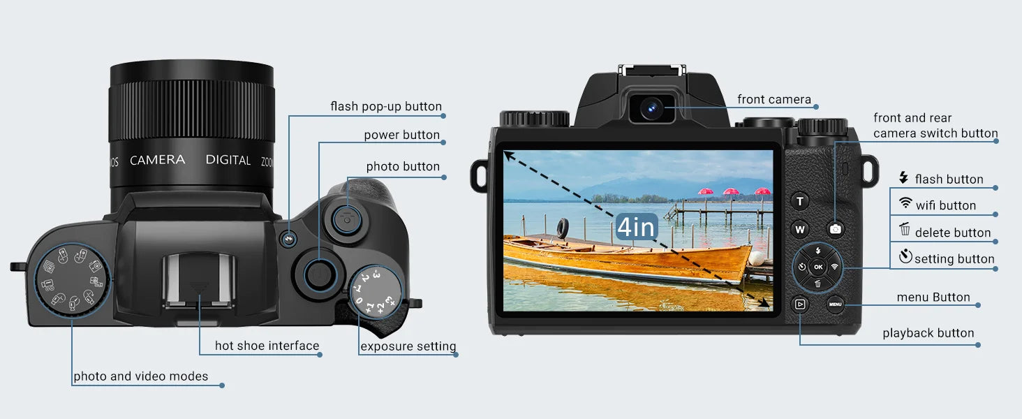 Meet the Gavonde 4K 64MP WiFi Vlogging Camera — a versatile, creator-first device that captures cinema-quality video and ultra-detailed stills while keeping you connected and in control. Whether you're shooting indoors, sceneries, weddings, or stylish self-recorded vlogs, this compact cam delivers professional results with easy sharing and flexible setups.