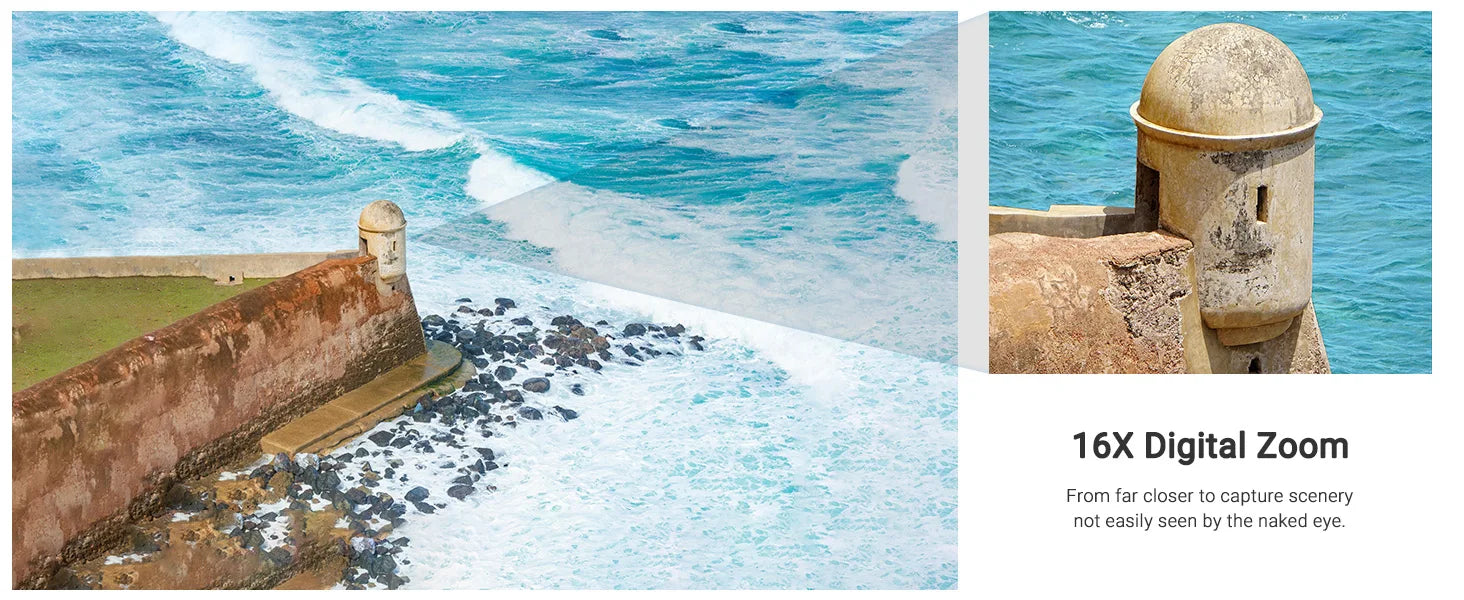 - Stunning 4K video and 64MP photos: Capture ultra-sharp 4K (4096x2160) video and up to 64 MP stills with multiple resolution options (4K, 2.7K, 1080P, 720P, 360P).