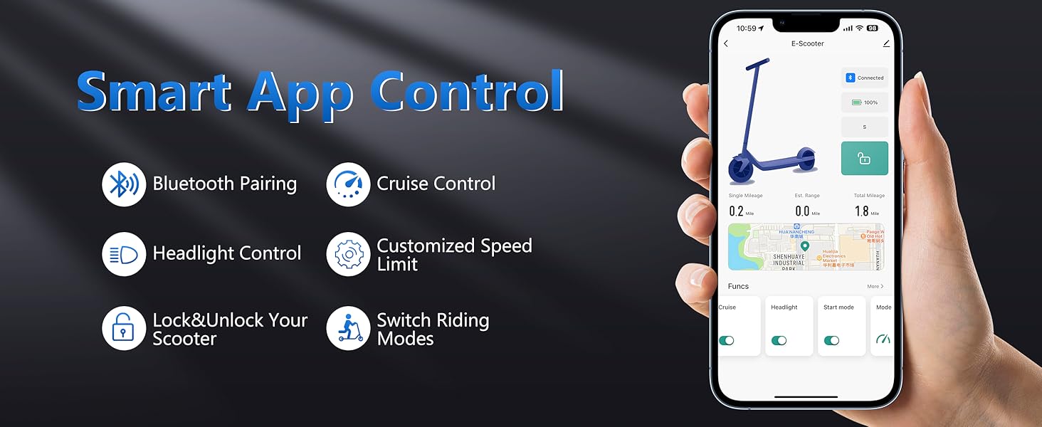 - Powerful performance: 500W motor, 3 speed modes (6, 15, 25 KM/H) with app control for a top speed up to 35 KM/H (22 MPH).