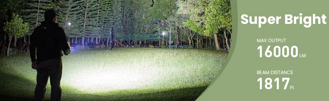 - Ultra-bright turbo power: 6 x XHP50B LEDs deliver up to 16000 lumens for rapid scene illumination and long-range visibility.