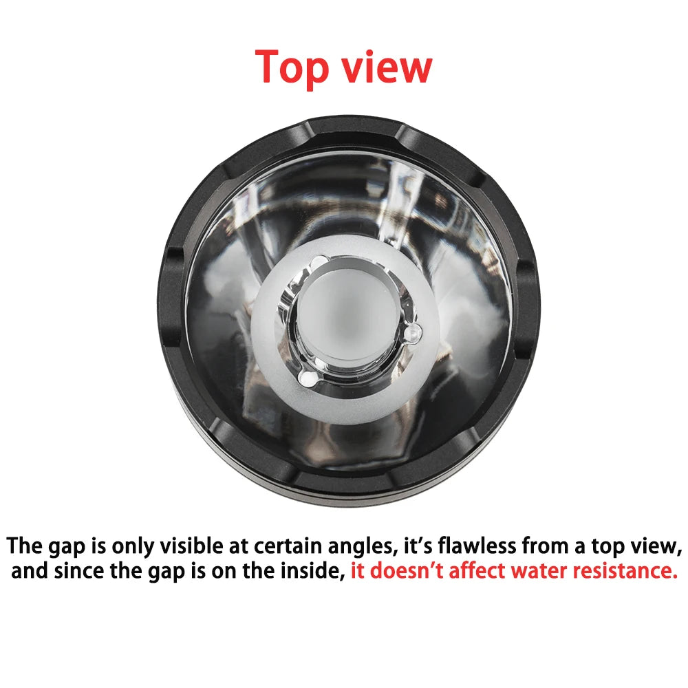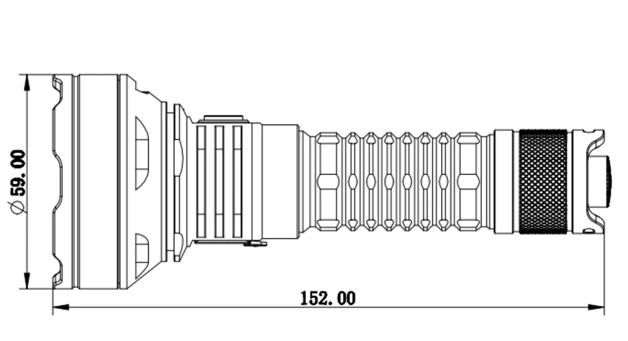 - Specifications at a glance: emitter – Luminus SFT40 (6000–6500K); length – 152 mm; head diameter – 59 mm; weight ≈ 200 g without battery; body – aerospace grade 6061 aluminum; lens – toughened mineral glass.