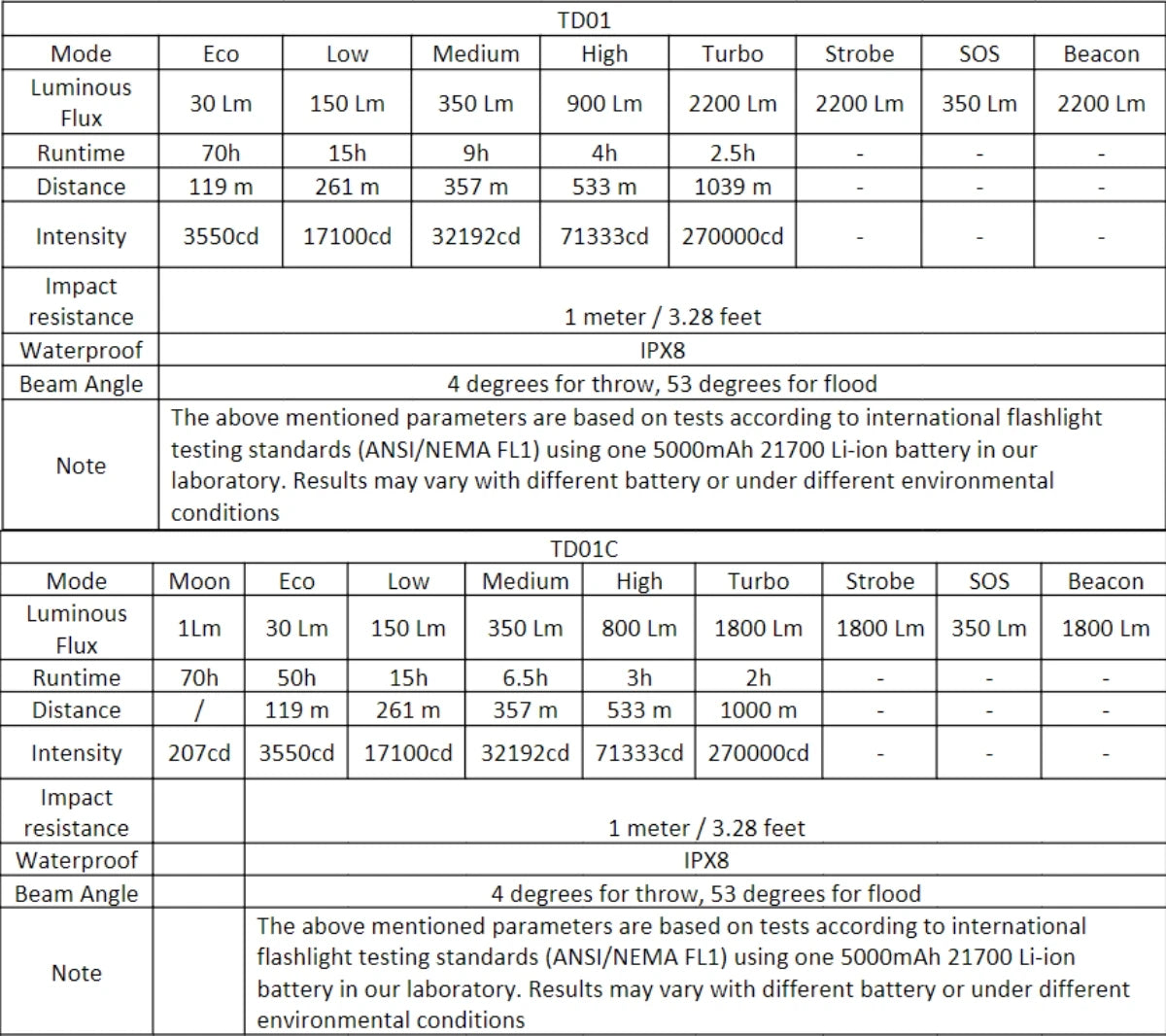 With its dual‑switch design, robust construction, long‑range performance, and USB‑C rechargeable power, the TD01C stands out from the crowd—delivering dependable brightness when you need it most and smart regulation to keep it safe and efficient on every mission.