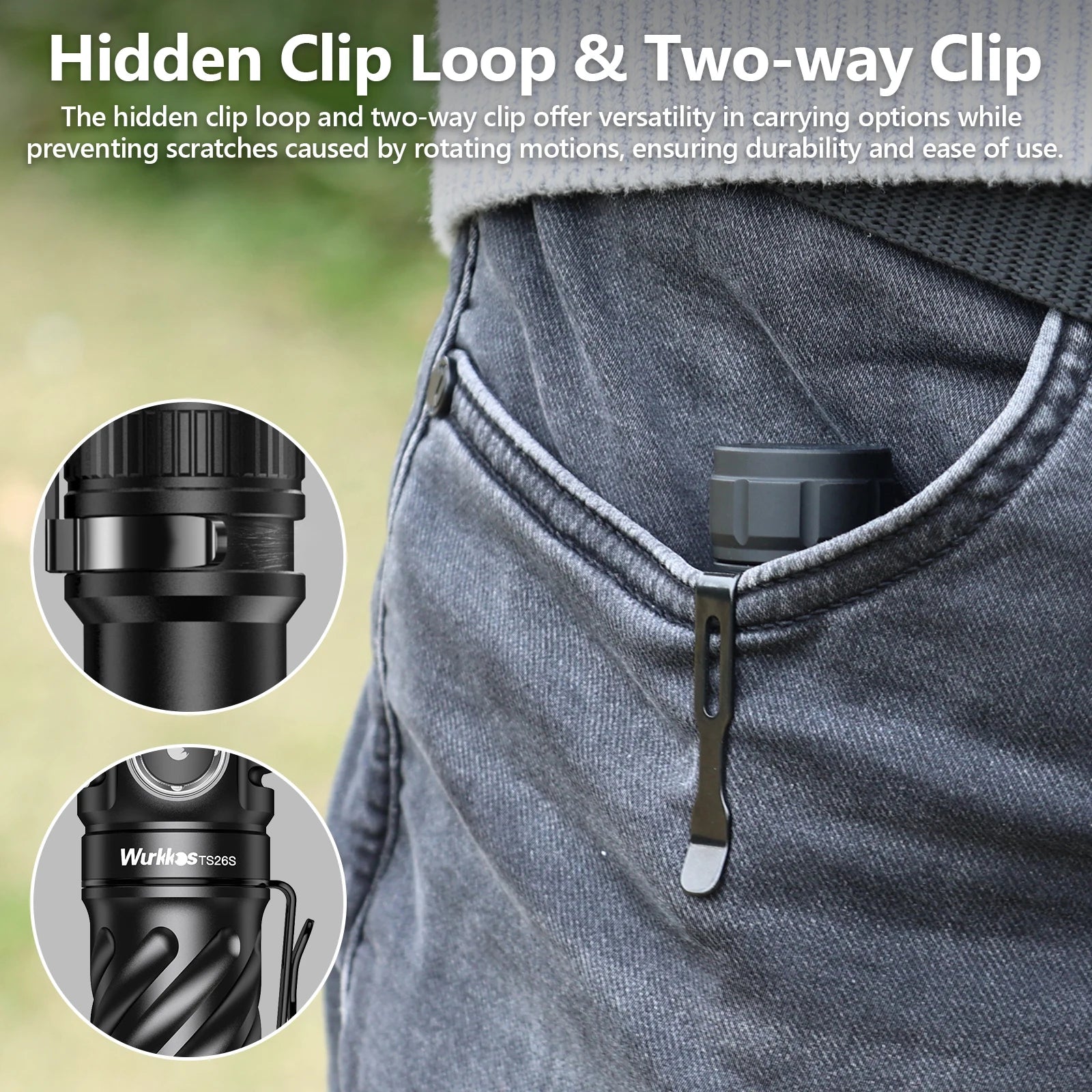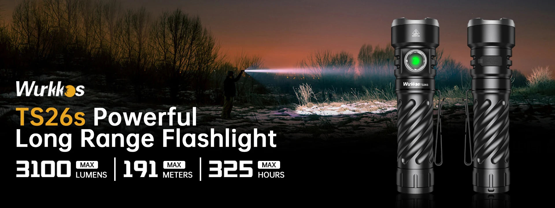Wurkkos TS26S is a powerful, versatile EDC/outdoor flashlight designed for home, hiking, camping, and personal self-defense. Crafted from aerospace-grade 6061 aluminum and CNC-machined with a hard-anodized Type III anti-abrasive finish, it delivers rugged durability, excellent heat management, and reliable performance in demanding conditions.