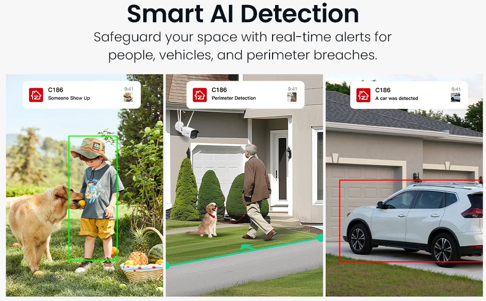 - Smart AI Detection — Real-time alerts for people, vehicles, and perimeter breaches help you respond fast and accurately.