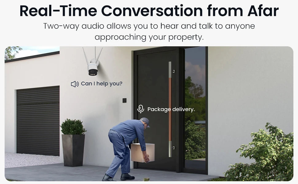 - Two-way Audio — Listen and talk remotely to visitors or delivery personnel, enhancing communication and security.