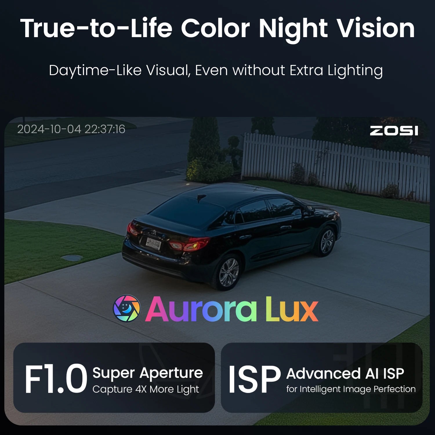 - Aurora Lux Technology — With a large F1.0 aperture, a 1/1.79" image sensor, a 4.0 TOPS NPU, and a powerful ISP, it delivers bright, true-color imagery even in challenging lighting, turning night into day.