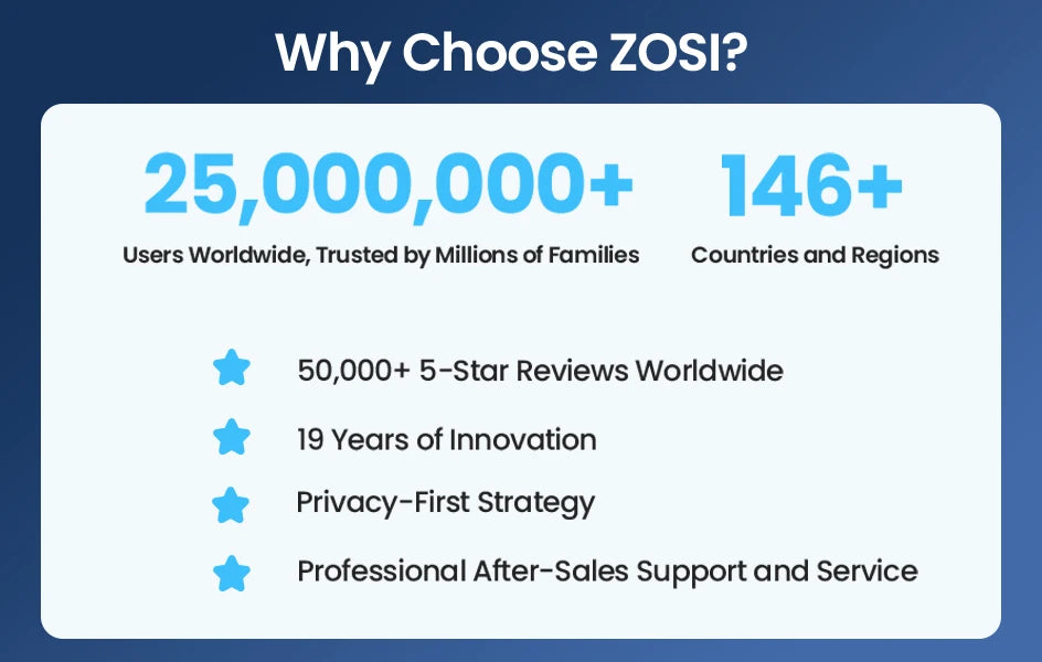 - Live view across multiple devices — Real-time access on your smartphone or PC via the Zosi Smart App and AVSS Client.