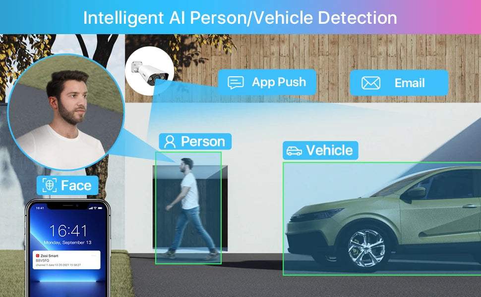 - AI Face, Person & Vehicle Detection: Precisely detects faces, people, and vehicles to minimize false alerts and ensure you only get notified about meaningful events.